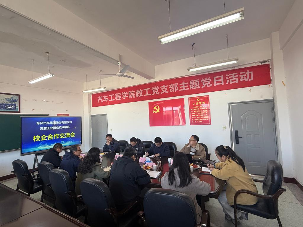 (通讯员:张勇)2025年11月21日上午,东风汽车集团股份有限公司与湖北工业职业技术学院校企合作交流会议在学校汽车工程学院成功举行。双方围绕深化合作内涵、拓展合作领域等议题进行了富有成效的磋商,为后续战略合作的推进奠定了良好基础。