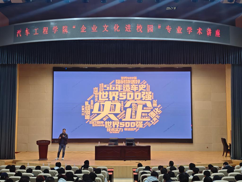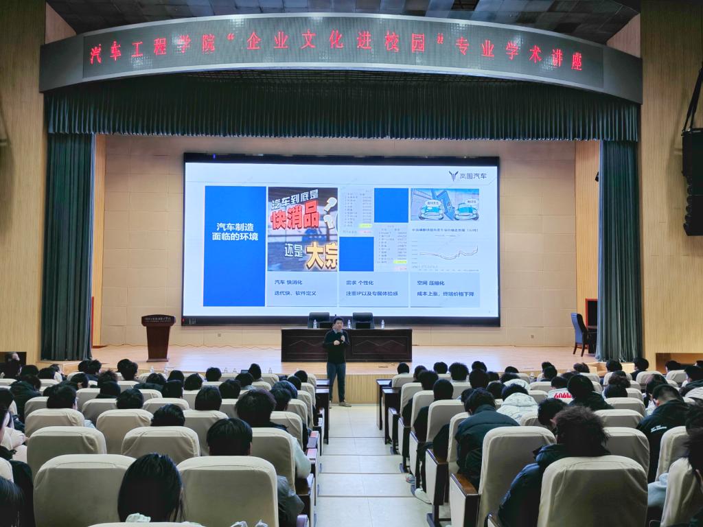 (通讯员李路)为进一步深化产教融合,引导师生了解行业动态,服务区域经济发展,汽车工程学院于12月5日举办“企业文化进校园”系列讲座。与学院长期以来保持紧密合作的企业——岚图汽车科技股份有限公司的两位资深专家应邀分别就汽车产业未来趋势与职场角色转换两大主题进行深度分享。院长赵艳杰主持活动,全院师生共同参与。