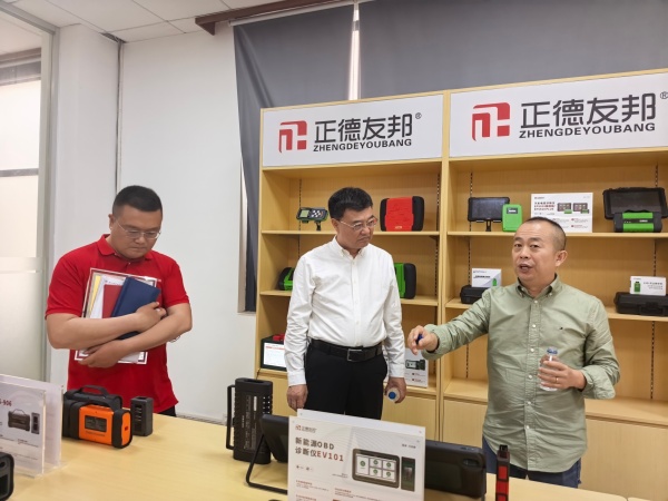 走进深圳市正德友邦科技有限公司,2021届校友唐浩给边疆一行现场演示了专门为新能源车年检而研发的新产品,操作娴熟精准、解释浅显易懂。董事长王涛表示,学校不间断地为公司输送专业人才,现在100多人的公司有三分之一员工包括副董和总经理均来自湖北工业职院,除今年实习生外,全部已成为各大区域经理和技术骨干。作为一家致力于汽车故障诊断研发、生产、销售、售后服务于一体的中小型高新技术企业,产品主要适用于重型卡车,远销美国市场。王涛说:“海外客户使用我公司的产品,我很自豪!贵校培养的学生将产品打入海外市场,我更自豪!”