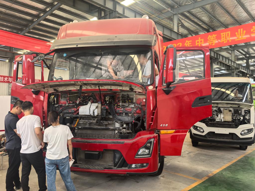 作为十堰市高技能人才培训基地,汽车工程学院始终紧扣地方“一主四优多支撑”产业发展体系,精准对接东风商用车技术升级与人才需求,构建了“理论筑基、实操赋能、案例攻坚”的三维培训课程体系。培训内容既涵盖商用车发动机、底盘、电气系统等传统核心模块,详解柴油发动机高压共轨技术,又聚焦国六排放控制技术、智能诊断设备操作等前沿内容,全面覆盖商用维修技师必备的专业技能。