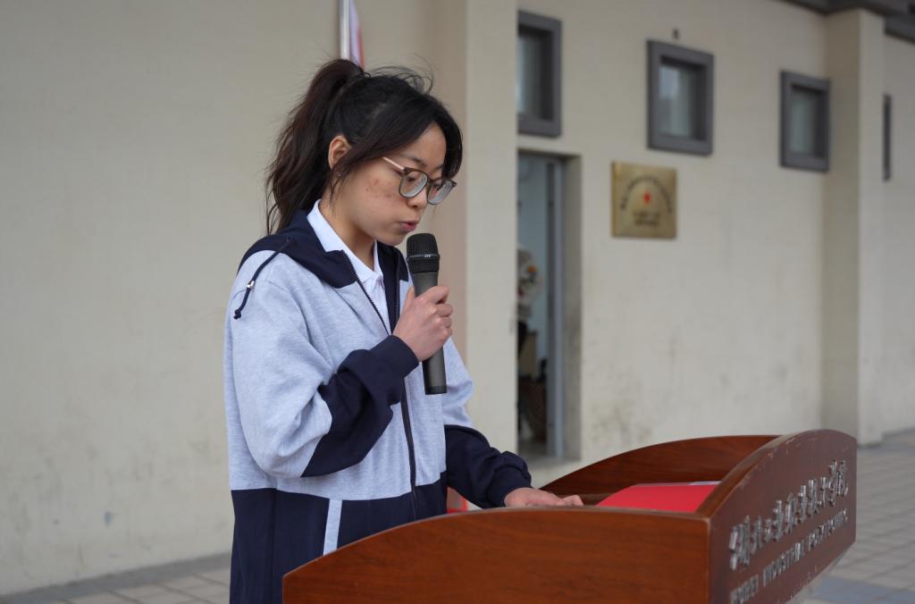 学生代表瞿敬雅宣读《读书活动倡议书》,向全体师生发出诚挚号召:以国旗为证、以诵读为桥,传承中华优秀传统文化,厚植家国情怀与使命担当;主动走进图书馆、亲近经典典籍,让阅读成为终身习惯,让书香浸润校园。