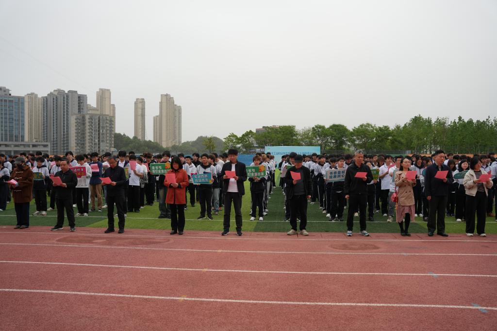 活动在庄严隆重的升旗仪式中正式启幕。国旗班队员步履铿锵、仪态严整,护卫五星红旗迎着朝阳冉冉升起。全体师生肃立注目、齐唱国歌,崇高的家国情怀在晨光中激荡升腾。