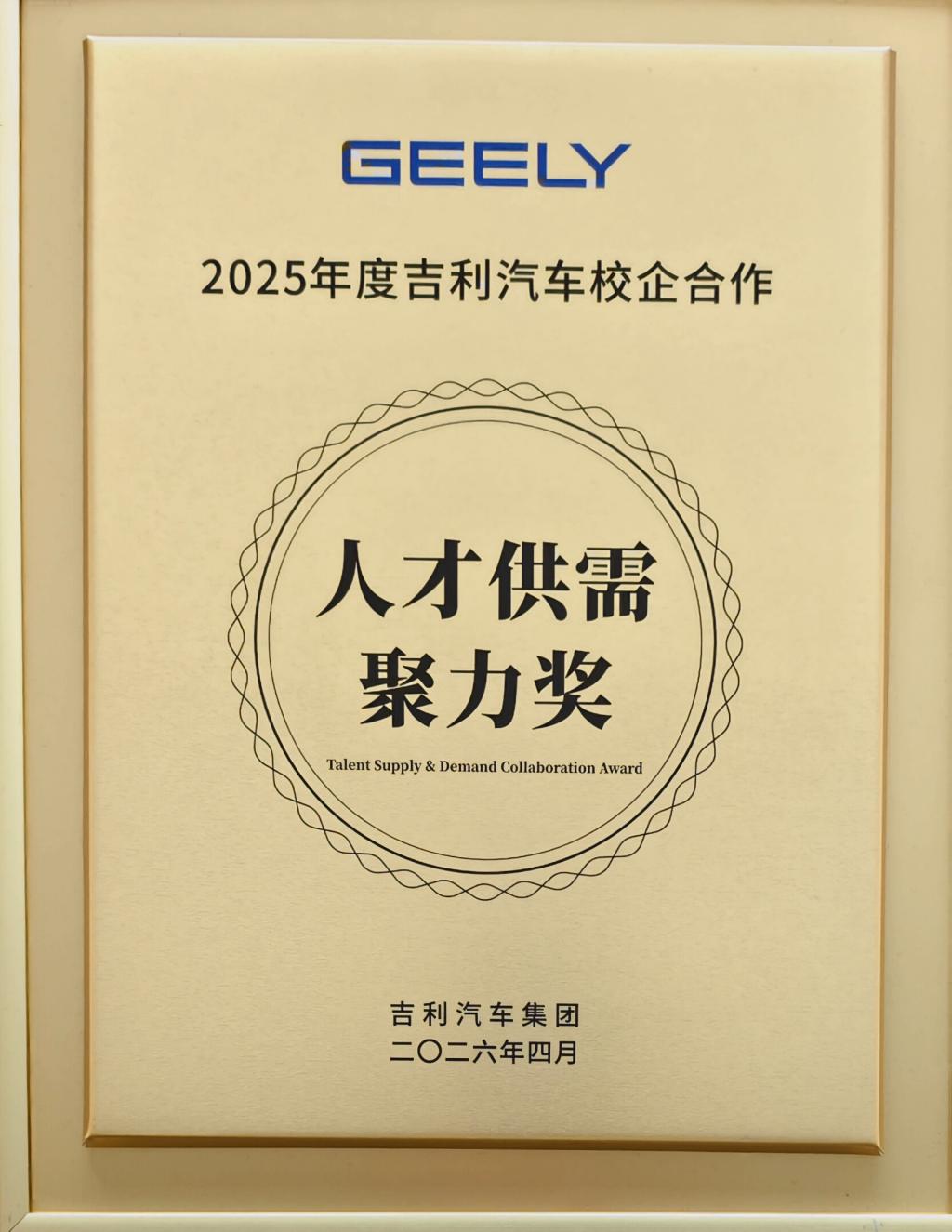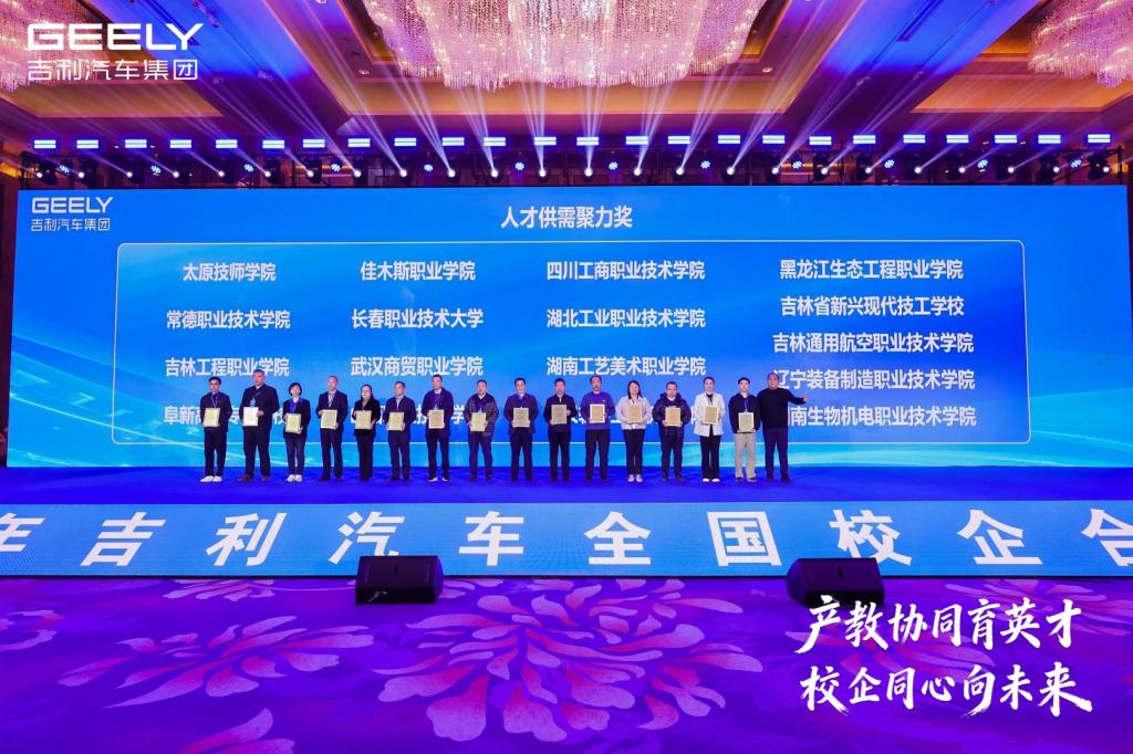 峰会设置了隆重的表彰环节,大会对2025年度在校企合作中做出突出贡献的174家单位予以表彰。湖北工业职业技术学院凭借在产教融合、人才供需对接领域的扎实成效与卓越贡献,荣获“2025年度吉利汽车校企合作人才供需聚力奖”,成为全国校企合作典范中的重要一员。这一荣誉不仅是对湖北工业职业技术学院与吉利汽车长期深度合作的充分肯定,更是双方在共建课程体系、共享实训资源、共育高素质技术技能人才方面取得阶段性成果的有力见证。